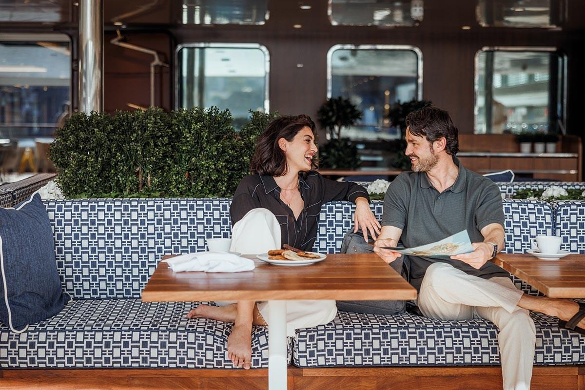 When it’s time to set sail, settle into a cozy couch on the aft deck at the Zephyr Lounge. As you enjoy a glass of wine or after-dinner coffee, watch the scenic coastline diminish on the horizon.